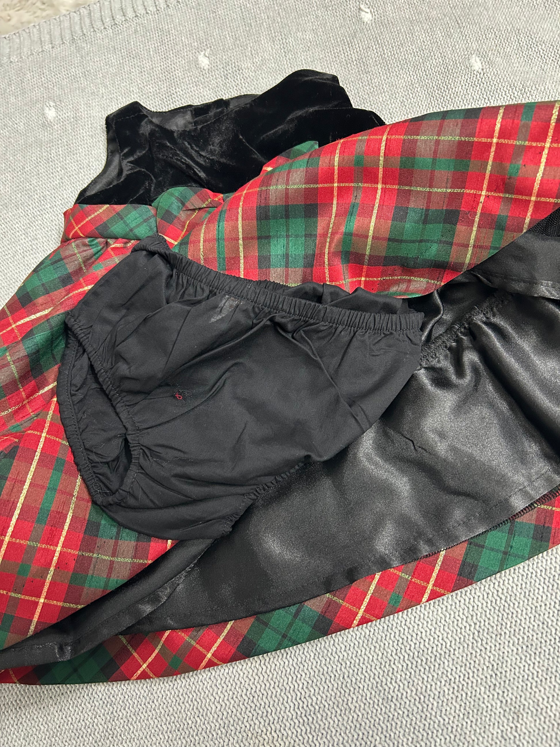 This velvet top plaid dress with black bummie is perfect for the holidays!