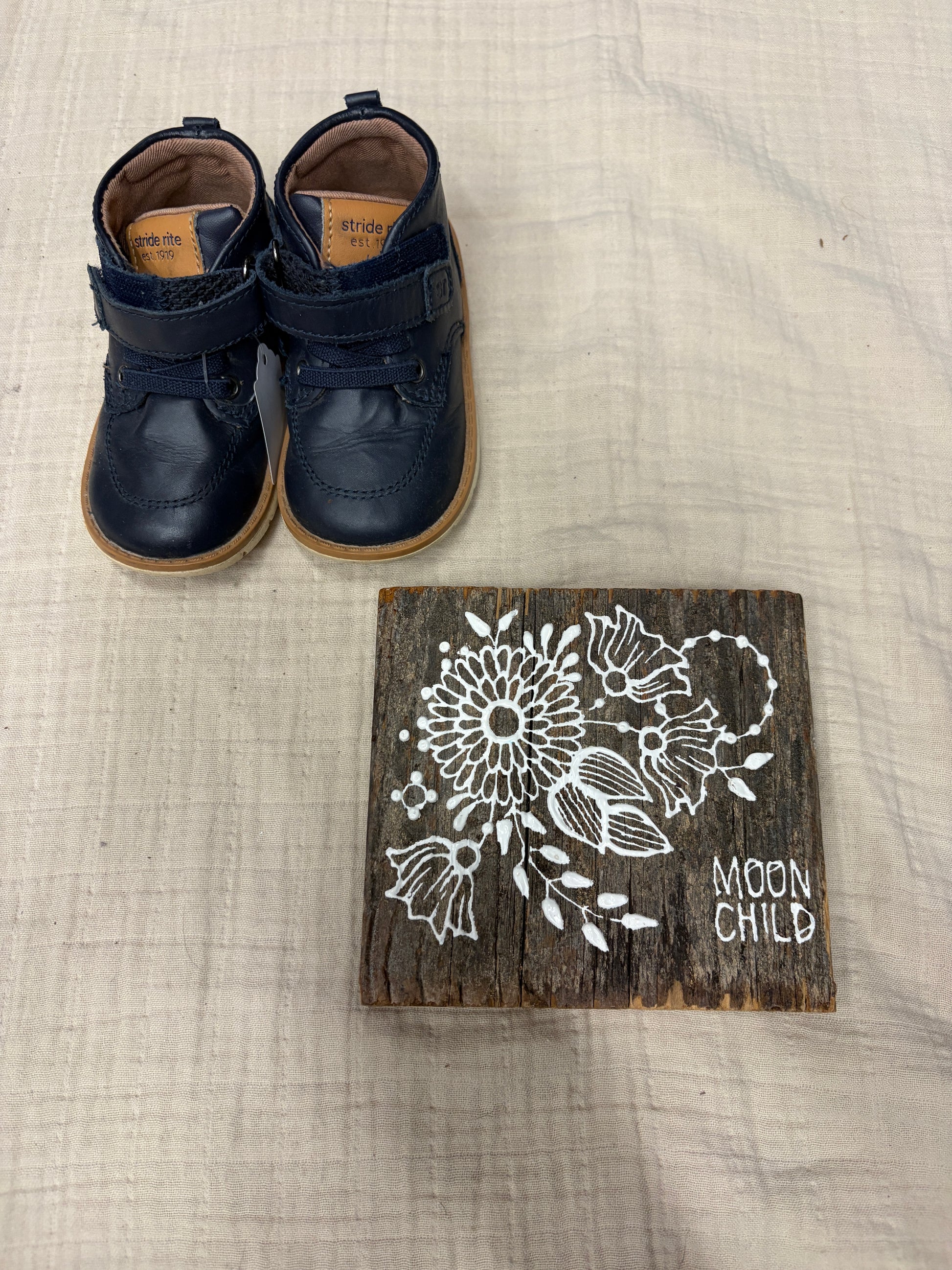 Stride rite navy leather boots size 5